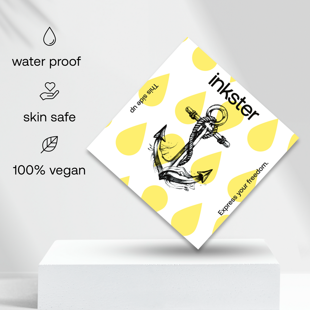 Für dein revolutionäres 2-Wochen-Tattoo von Inkster brauchst du nur das Tattoo, das du an deine Haustür geliefert bekommst. Eine Anleitung, wie man das Tattoo anbringt, befindet sich auf der Tattoo-Verpackung. Keine Sorge, es ist so einfach, nichts kann schief gehen!