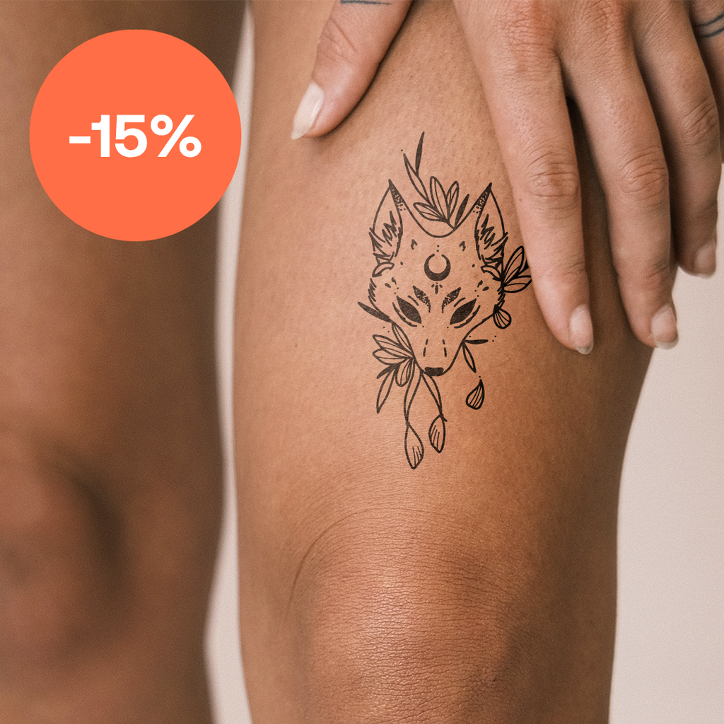 Der Blumenfuchs - Ein temporäres Tattoo voller Bedeutung und Inspiration! Der Blumenfuchs ist mehr als nur ein Tattoo - es ist ein Symbol der Freiheit, der Stärke und des persönlichen Wachstums. Die Geschichte hinter diesem Motiv ist tiefgründig und faszinierend. Der Fuchs steht traditionell für Klugheit und List, während Blumen für Schönheit und Veränderung stehen. Zusammen symbolisieren sie den Wunsch nach innerem Wachstum und die Fähigkeit, sich in jeder Situation anzupassen und zu blühen. Egal ob du eine persönliche Veränderung durchmachst oder einfach nur deine innere Stärke betonen möchtest, der Blumenfuchs ist das perfekte Tattoo, um dich daran zu erinnern, dass du jeder Herausforderung gewachsen bist. Das Tattoo Blumenfuchs eignet sich perfekt für verschiedene Körperstellen. Für größere Flächen wie die Brust oder den Rücken kann das Design seine ganze Pracht entfalten und ein echter Blickfang sein. Wenn du es lieber etwas dezenter magst, ist der Bereich hinter dem Ohr oder der Rippenbereich ideal. Egal wo du dich dafür entscheidest, der Blumenfuchs wird sicherlich alle Blicke auf sich ziehen. Mit dem Tattoo Blumenfuchs kannst du deinen persönlichen Stil auf einzigartige Weise ergänzen. Kombiniere es mit einem lässigen Outfit für den perfekten Streetstyle-Look oder wähle ein elegantes Kleid für einen besonderen Anlass. Das Tattoo passt zu jedem Anlass und verleiht deinem Look eine individuelle Note. Das Tattoo Blumenfuchs ist für alle geeignet, die ihre Persönlichkeit und ihren Stil auf unkonventionelle Weise ausdrücken möchten. Es ist perfekt für junge Menschen, die sich gegen dauerhafte Tätowierungen entscheiden oder einfach nur ein Tattoo ausprobieren möchten. Egal ob du ein Festival besuchst, eine Geburtstagsfeier hast oder einen Städtetrip planst, der Blumenfuchs ist das ideale Accessoire, um deinen Look zu vervollständigen. Zeige der Welt deine innere Stärke und Individualität mit diesem faszinierenden temporären Tattoo. Entdecke die Magie des Blumenfuchses und bestelle noch heute dein temporäres Tattoo von Inkster. Mit einer Haltbarkeit von bis zu zwei Wochen bietet es dir die Möglichkeit, deinen Stil zu testen und deiner Kreativität freien Lauf zu lassen. Lass dich von der symbolischen Bedeutung und der Vielseitigkeit dieses Tattoos inspirieren und finde deinen ganz persönlichen Ausdruck mit dem Blumenfuchs von Inkster.