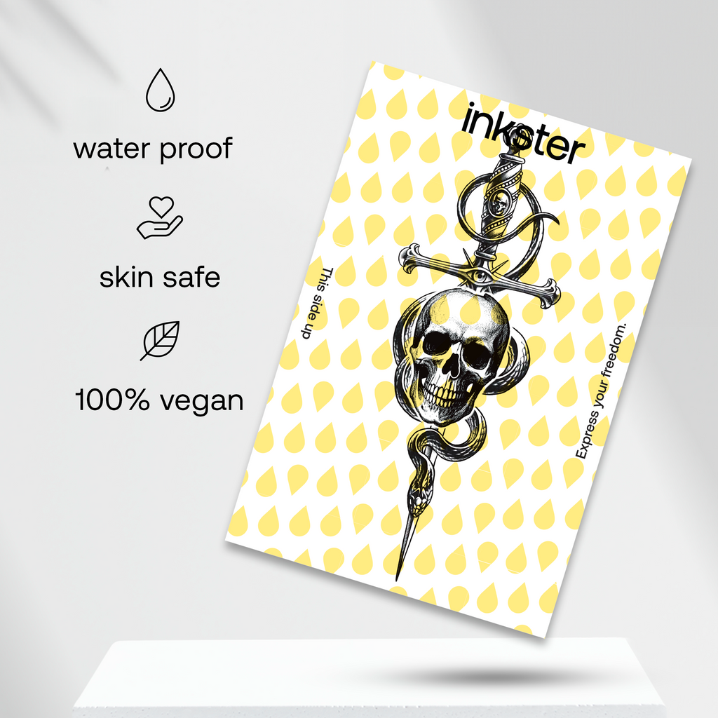 Um deine Haut zu schützen, basiert unsere Tinte auf pflanzlicher Basis mit natürlichen Inhaltsstoffen.