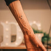 Unsere natürliche Inkster Tinte zieht in die erste Hautschicht ein und reagiert mit natürlichen Verbindungen in der Haut und der Luft, wodurch sie sich schwarz/blau färbt.