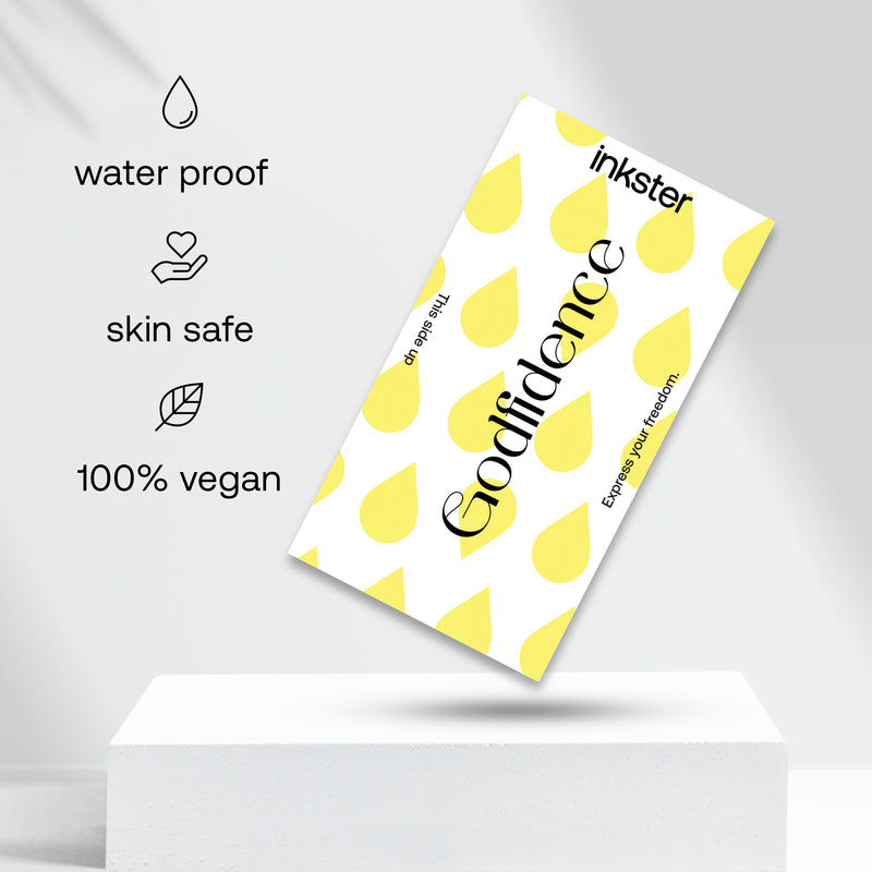 Das Godfidence Tattoo ist weit mehr als nur ein Design – es ist eine kraftvolle Botschaft von innerer Stärke, unerschütterlichem Glauben und dem Vertrauen in sich selbst. Es vereint die Überzeugung, dass mit Gott und Selbstvertrauen alles möglich ist. Der Begriff "Godfidence" setzt sich aus „Gott“ und „Confidence“ (Selbstvertrauen) zusammen und erinnert uns daran, dass wir mit göttlicher Führung jede Herausforderung meistern können. Ob als persönliche Affirmation, Quelle der Kraft in schwierigen Zeiten oder als tägliche Erinnerung an deine spirituelle Verbindung – das Godfidence Tattoo ist eine inspirierende und bedeutungsvolle Wahl. Platzierung des Godfidence Tattoos – Stärke sichtbar machen Die Platzierung des Godfidence Tattoos hängt ganz von deinem Stil und der gewünschten Aussage ab. Es eignet sich ideal für größere Flächen wie den Unterarm, die Brust oder den Rücken, um die kraftvolle Botschaft gut sichtbar zu tragen. Für ein dezenteres Statement sind Handgelenk, Knöchel oder der Bereich hinter dem Ohr wunderbare Alternativen. Auch an einer versteckten Stelle kann dieses Tattoo getragen werden – als ganz persönliches Zeichen deines Glaubens und Vertrauens. Vielseitiger Stil – Eine Botschaft für jede Gelegenheit Das Godfidence Tattoo passt zu jedem persönlichen Stil und Anlass. Ob im minimalistischen Look mit T-Shirt und Jeans oder in eleganter Kleidung wie einem Anzug oder einem Kleid – dieses Tattoo verleiht deinem Look eine besondere Bedeutung. Es ist perfekt für besondere Anlässe, Reisen oder einfach als tägliche Erinnerung daran, was dich trägt: Glaube und Selbstvertrauen. Für alle, die an die Kraft des Glaubens und des Selbstvertrauens glauben Das Godfidence Tattoo ist für all jene gemacht, die Kraft aus ihrem Glauben und dem Vertrauen in die eigenen Fähigkeiten schöpfen. Es ist ideal für Menschen, die ihre spirituelle Reise bewusst leben oder ein sichtbares Zeichen für ihre innere Stärke setzen möchten. Ob du gerade erst beginnst, dich mit Spiritualität auseinanderzusetzen, oder schon lange deinen Weg mit Gott gehst – dieses Tattoo erinnert dich jeden Tag daran, dass du stark bist und geführt wirst. Entdecke die Kraft von Glauben und Selbstvertrauen – mit dem Godfidence Tattoo Lass das Godfidence Tattoo ein Zeichen deines Weges sein – ein temporäres Tattoo, das deine innere Stärke und deine Verbindung zu etwas Höherem sichtbar macht. Trage es mit Stolz als Ausdruck deines Vertrauens in Gott und in dich selbst. Mit dem Godfidence Tattoo von Inkster trägst du deinen Glauben immer bei dir. Bestelle jetzt dein temporäres Inkster Tattoo und entdecke die tiefere Bedeutung des Godfidence Tattoos.