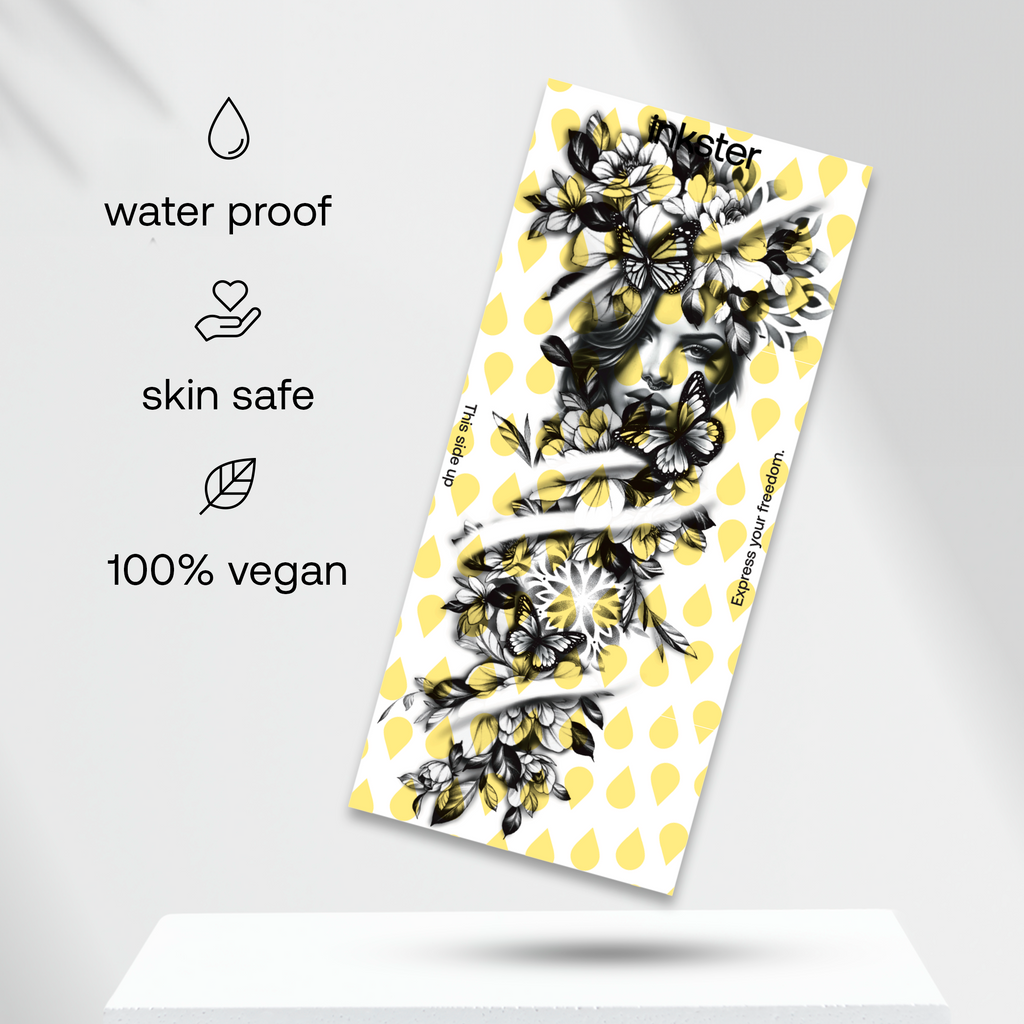 Unsere natürliche Inkster Tinte zieht in die erste Hautschicht ein und reagiert mit natürlichen Verbindungen in der Haut und der Luft, wodurch sie sich schwarz/blau färbt.