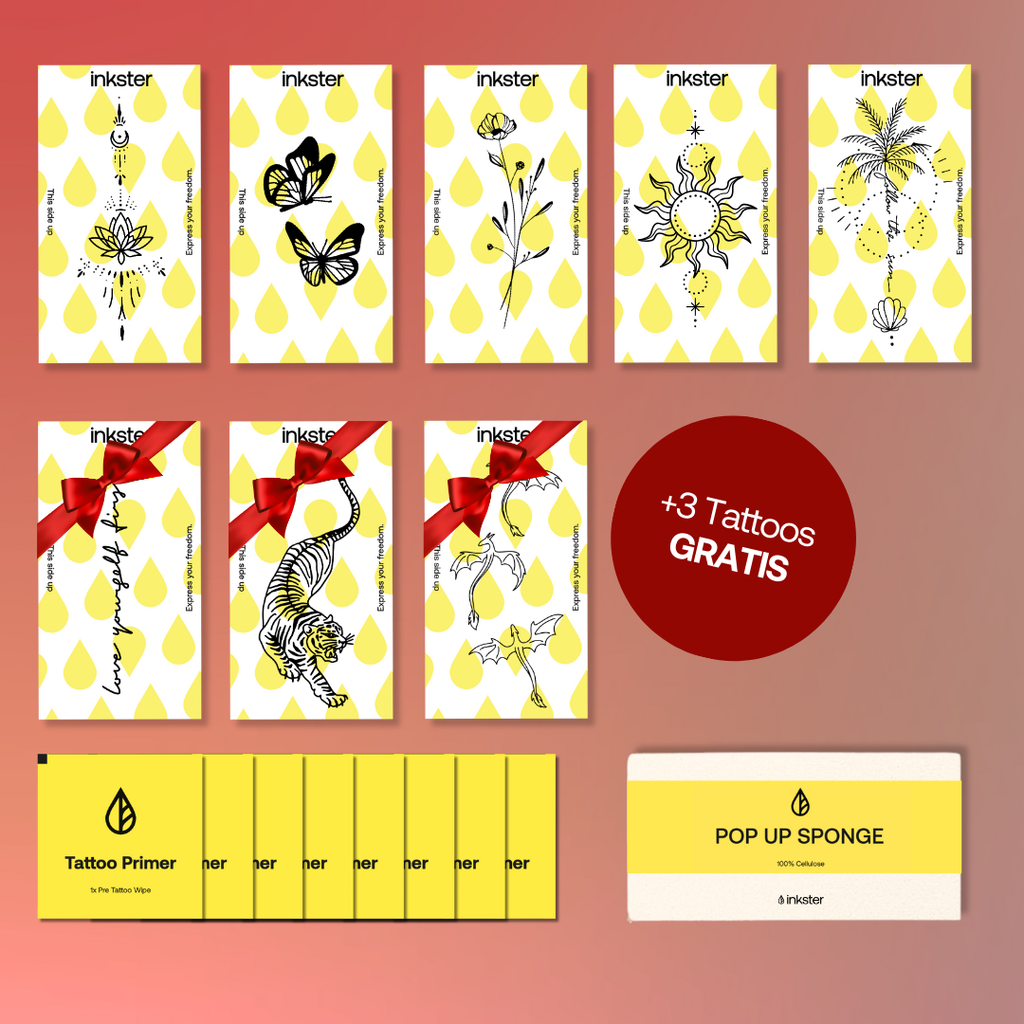 Unsere natürliche Inkster Tinte zieht in die erste Hautschicht ein und reagiert mit natürlichen Verbindungen in der Haut und der Luft, wodurch sie sich schwarz/blau färbt.