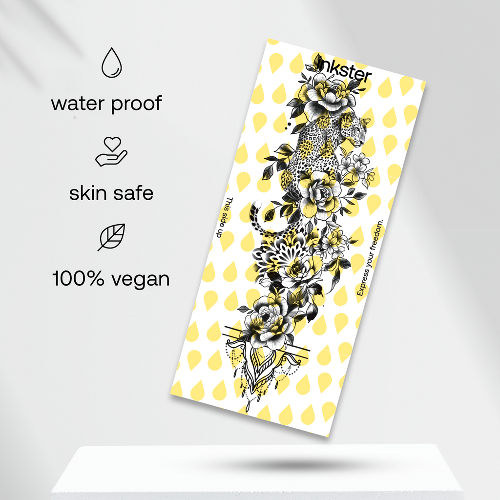 Unsere natürliche Inkster Tinte zieht in die erste Hautschicht ein und reagiert mit natürlichen Verbindungen in der Haut und der Luft, wodurch sie sich schwarz/blau färbt.