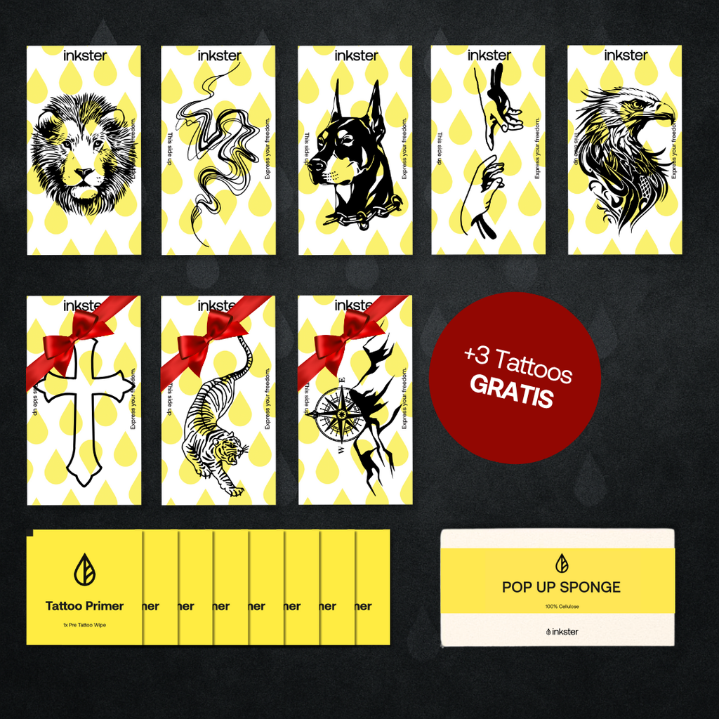 Unsere natürliche Inkster Tinte zieht in die erste Hautschicht ein und reagiert mit natürlichen Verbindungen in der Haut und der Luft, wodurch sie sich schwarz/blau färbt.