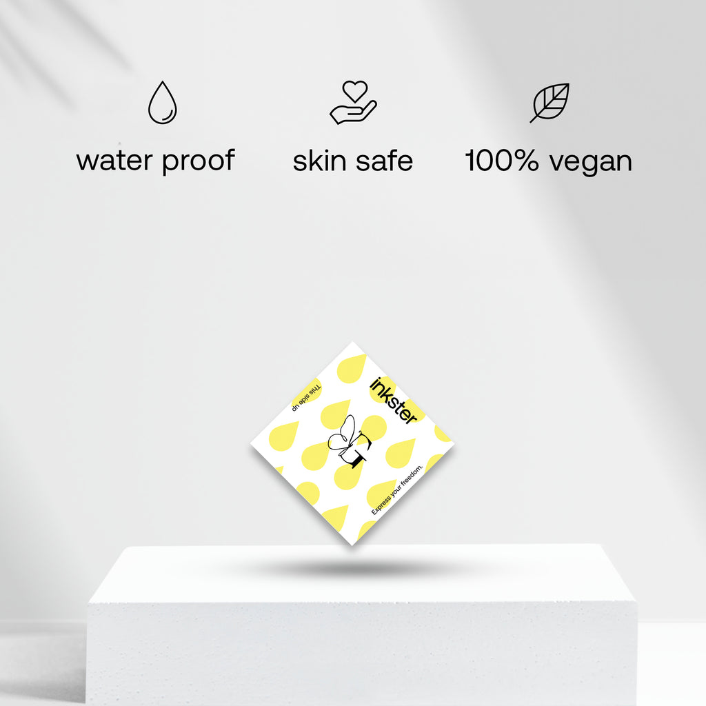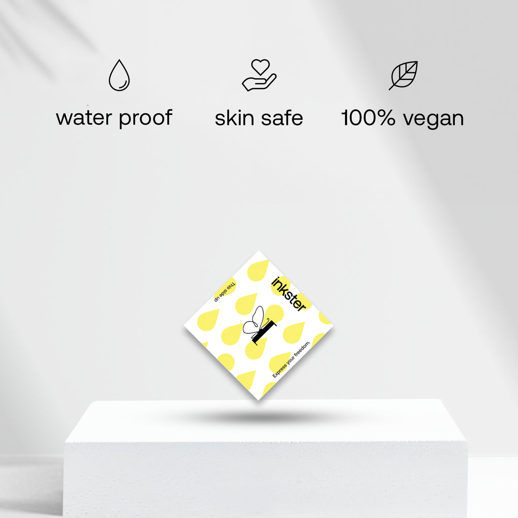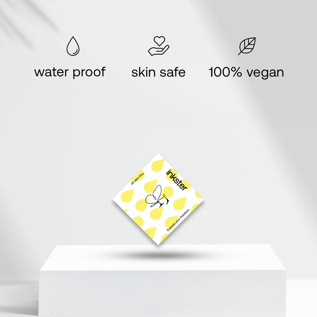 Für dein revolutionäres 2-Wochen-Tattoo von Inkster brauchst du nur das Tattoo, das du an deine Haustür geliefert bekommst. Eine Anleitung, wie man das Tattoo anbringt, befindet sich auf der Tattoo-Verpackung. Keine Sorge, es ist so einfach, nichts kann schief gehen!
