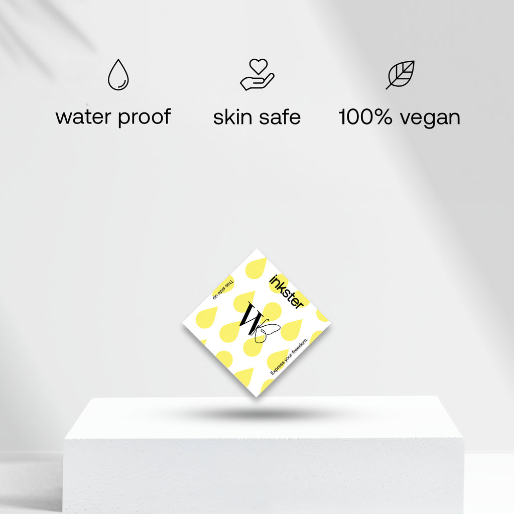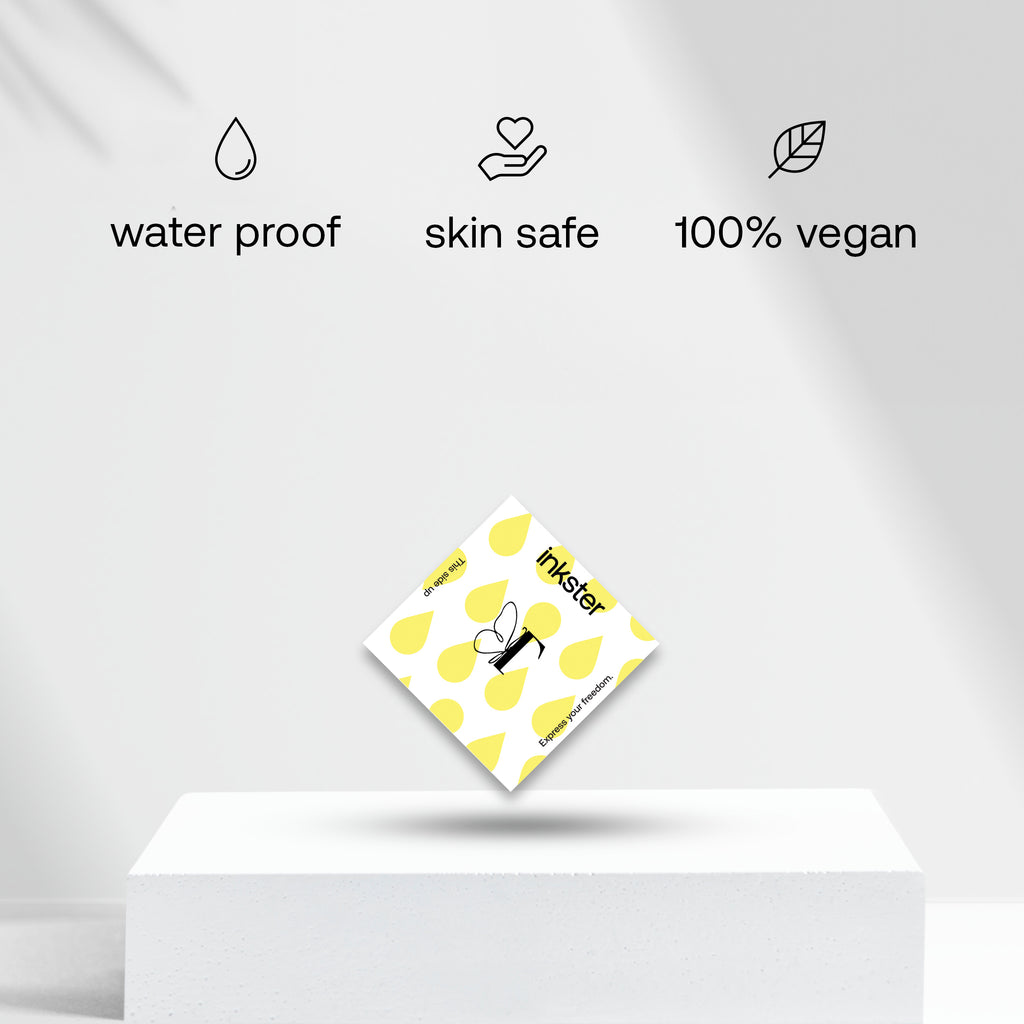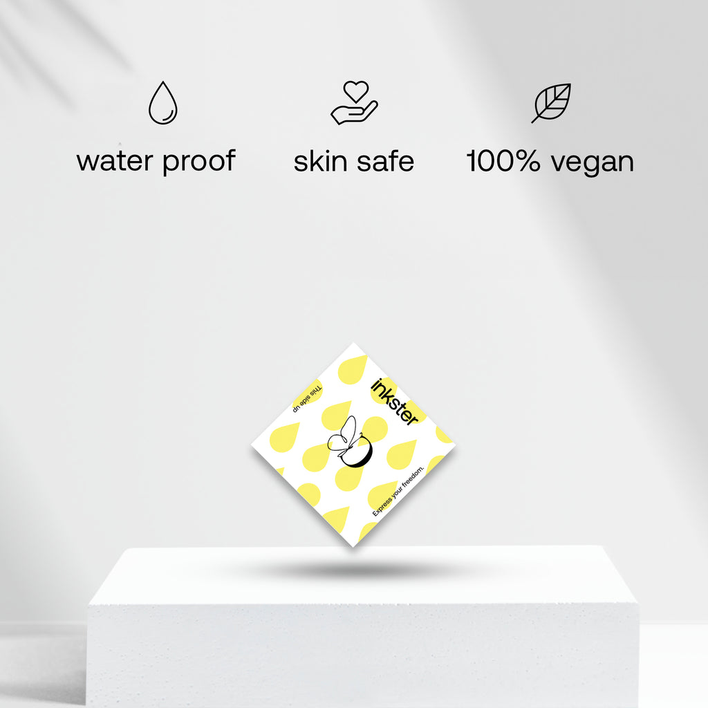 Für dein revolutionäres 2-Wochen-Tattoo von Inkster brauchst du nur das Tattoo, das du an deine Haustür geliefert bekommst. Eine Anleitung, wie man das Tattoo anbringt, befindet sich auf der Tattoo-Verpackung. Keine Sorge, es ist so einfach, nichts kann schief gehen!