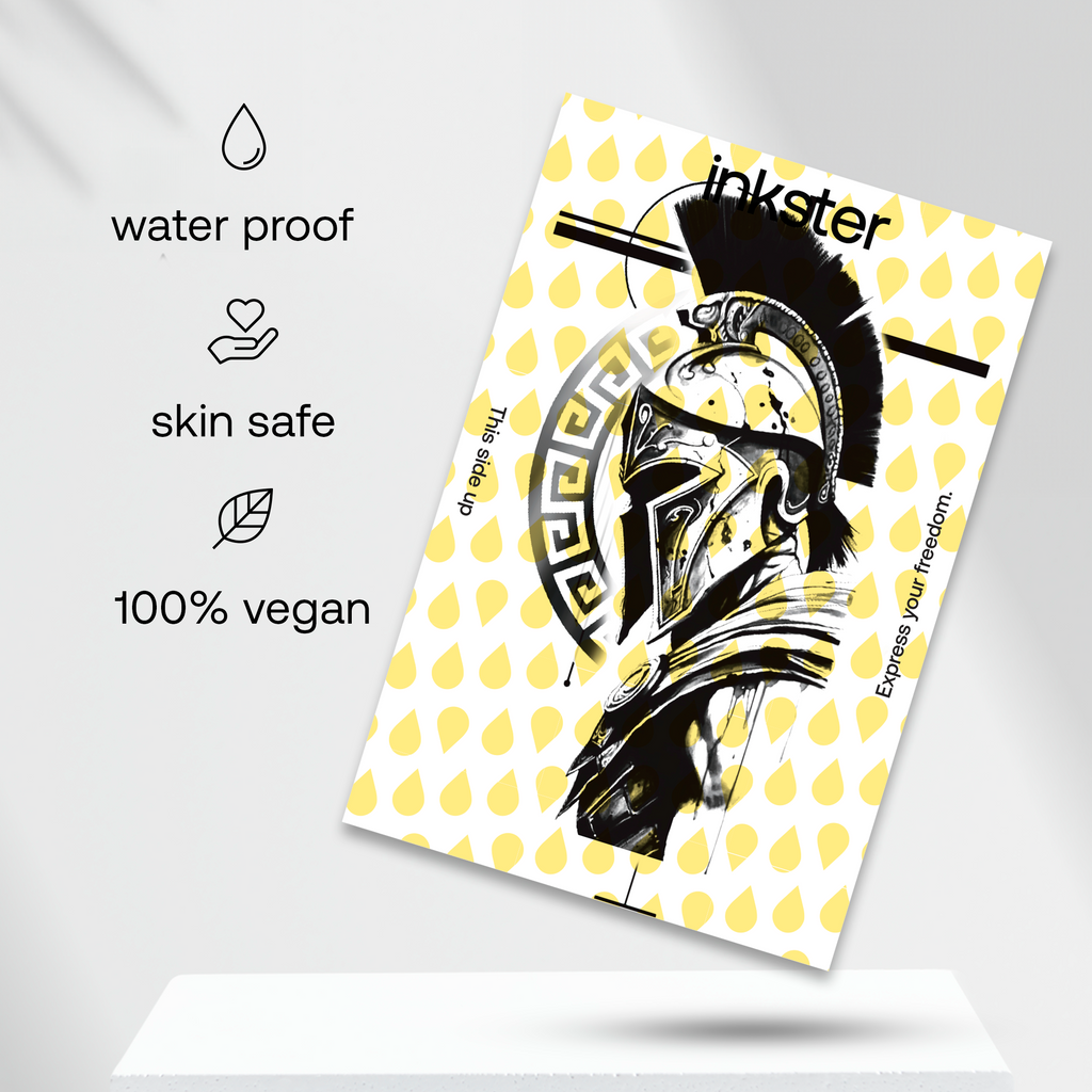 Für dein revolutionäres 2-Wochen-Tattoo von Inkster brauchst du nur das Tattoo, das du an deine Haustür geliefert bekommst. Eine Anleitung, wie man das Tattoo anbringt, befindet sich auf der Tattoo-Verpackung. Keine Sorge, es ist so einfach, nichts kann schief gehen!