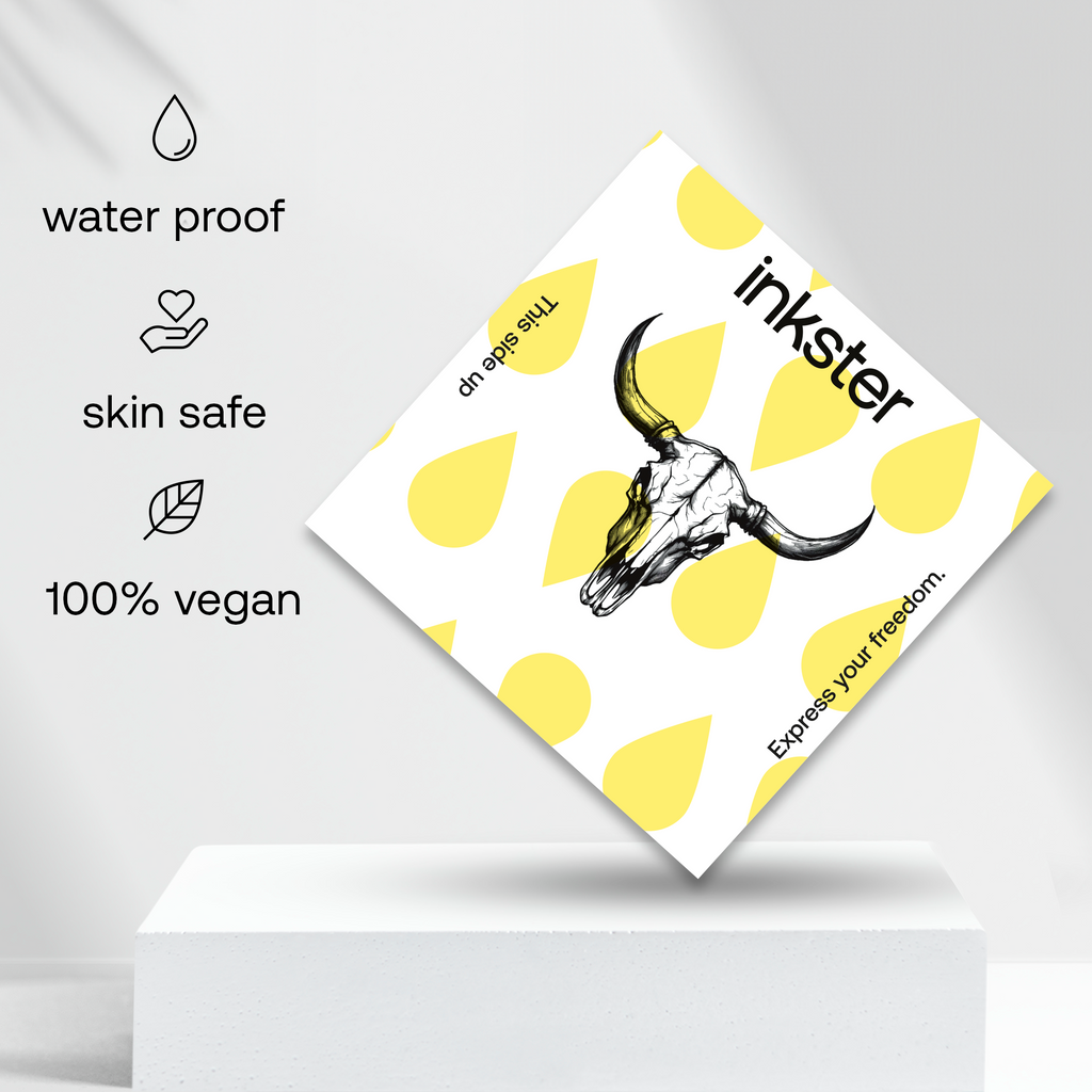 Für dein revolutionäres 2-Wochen-Tattoo von Inkster brauchst du nur das Tattoo, das du an deine Haustür geliefert bekommst. Eine Anleitung, wie man das Tattoo anbringt, befindet sich auf der Tattoo-Verpackung. Keine Sorge, es ist so einfach, nichts kann schief gehen!