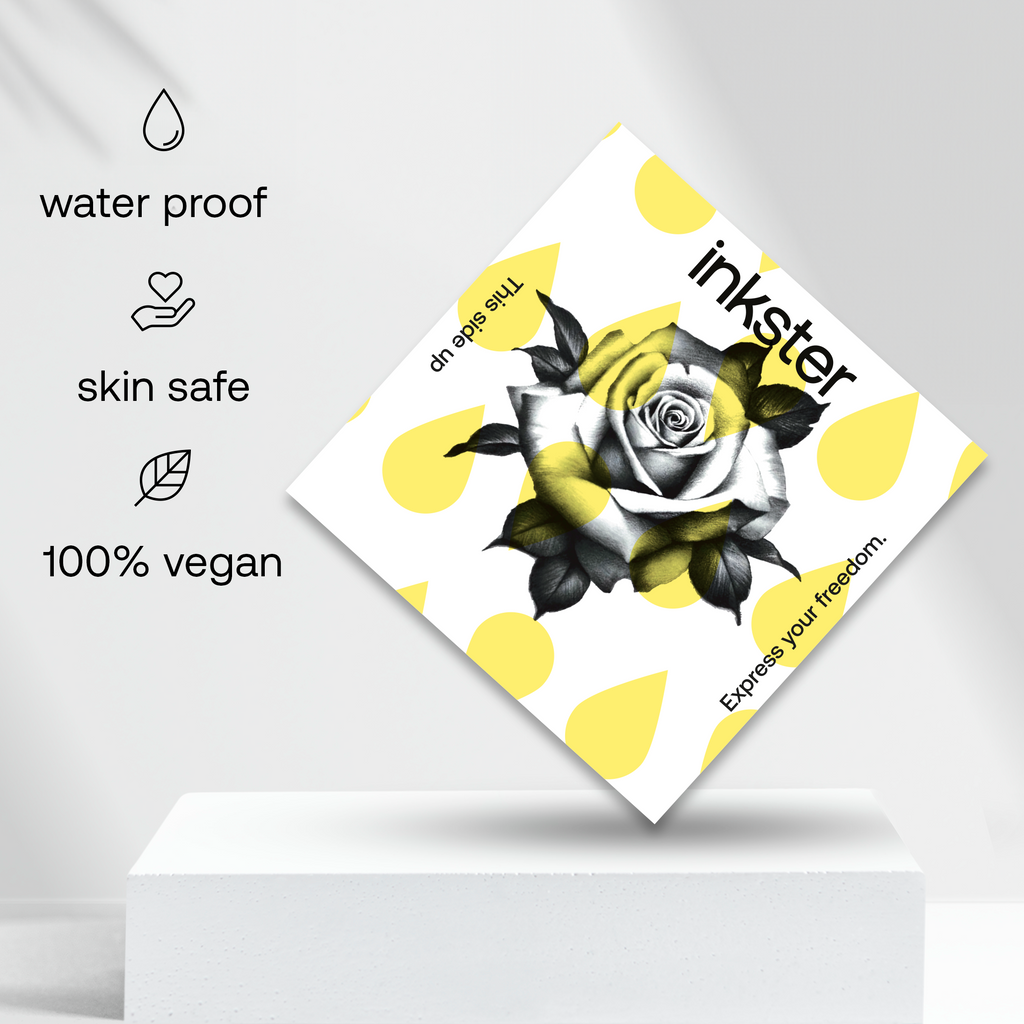 Für dein revolutionäres 2-Wochen-Tattoo von Inkster brauchst du nur das Tattoo, das du an deine Haustür geliefert bekommst. Eine Anleitung, wie man das Tattoo anbringt, befindet sich auf der Tattoo-Verpackung. Keine Sorge, es ist so einfach, nichts kann schief gehen!
