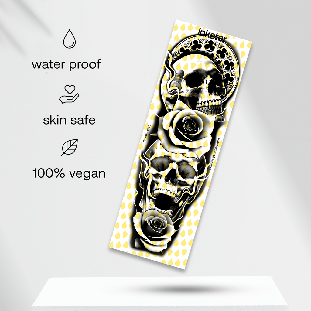 Der Schädel erinnert an Vergänglichkeit und die Begrenztheit des Lebens. Die Rose steht für Schönheit, Liebe und das Wertvolle im Moment. Zusammen symbolisieren sie: Lebe bewusst und intensiv, weil alles endlich ist.